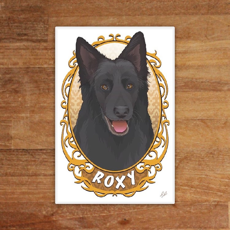 Order your custom illustrated 'Dog Crest' of special canine friends. Available in solo crest, or 2-Dog 'Duo' Crest.' Each crest is unique in design and features a stylized name plate. Please send reference photos of dog(s) to [email protected] after completing the checkout process :).