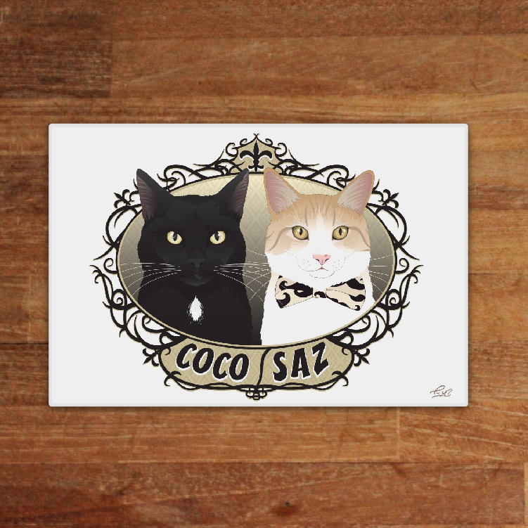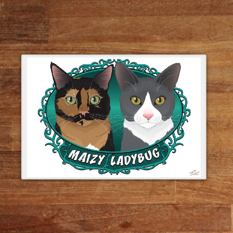 Order your custom Duo Portrait Crest featuring two special felines. Crest is unique in design and features a stylized name plate for both pets. Please send reference photos of pets to [email protected] after completing the checkout process :).